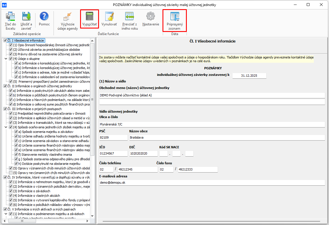 Tip: tlačidlo Vypočítať nájdete na všetkých tabuľkách, ktoré si preberajú hodnoty z účtovníctva.