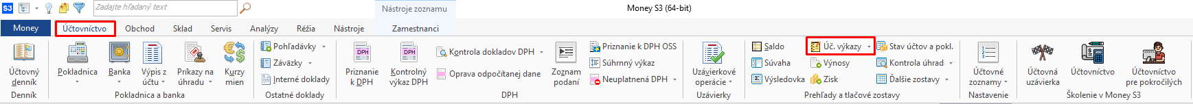 10. Ďalším krokom je teda export Poznámok k účtovnej závierke. Tie v programe Money S3 nájdeme cez Účtovníctvo a rozkliknutím šípky pri voľbe Účtovné výkazy.