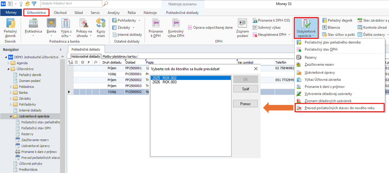 Aj keď ešte nemáme definitívne uzavretý starý rok, tak už pracujeme v novom roku a potrebujeme si tlačiť v novom roku tlačové zostavy Peňažný denník, Stav bankových účtov alebo Stav hotovosti. Aby boli tieto zostavy aktuálne, tak priebežne vieme prevádzať konečné stavy týchto zostáv zo starého do nového roka.