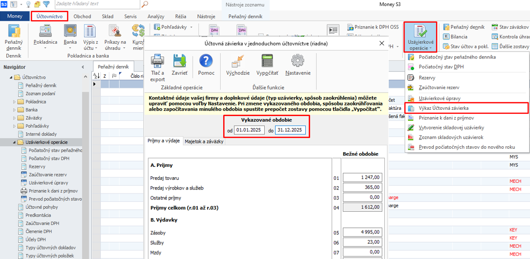 Návod Vás prevedie krokmi potrebnými na uzavretie roku v Money S3 pri spracovávaní jednoduchého účtovníctva.